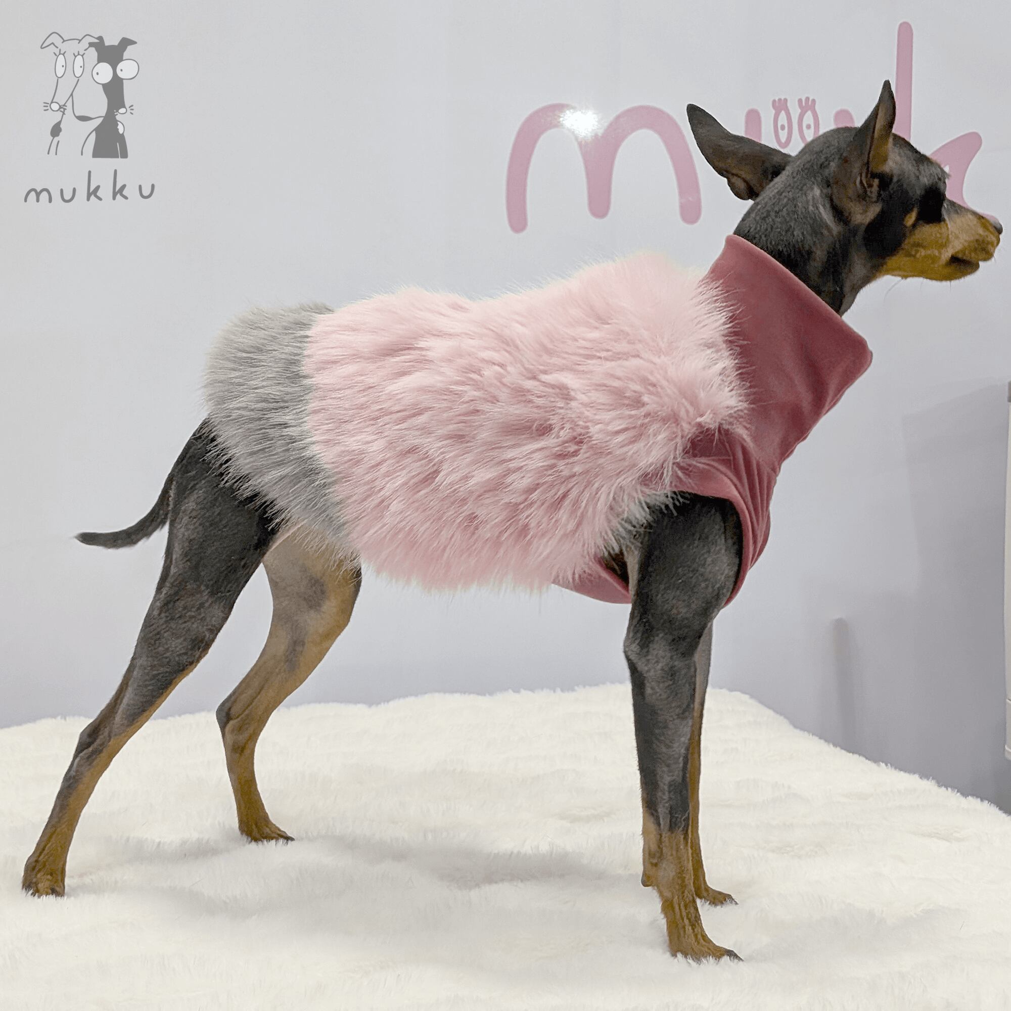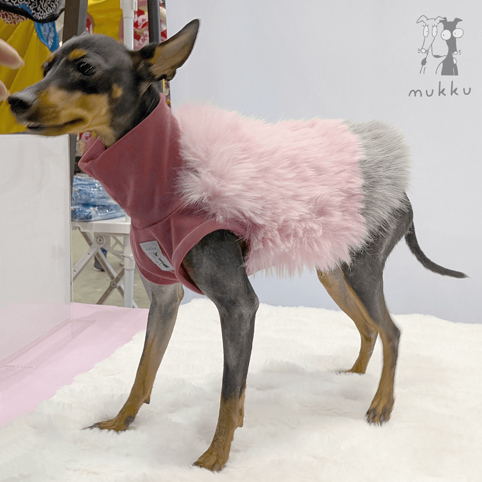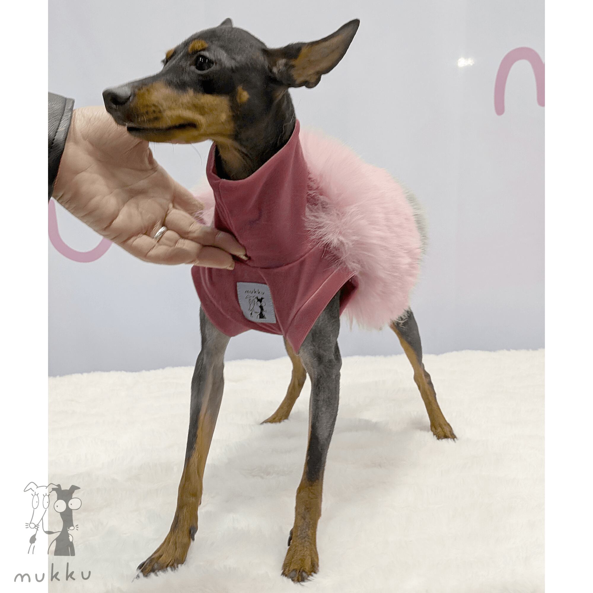 肌に触れる部分は伸縮性のある起毛生地を使用しているため、暖かく動きやすい仕上がりになっています。小さいサイズはミニピンさんにも!