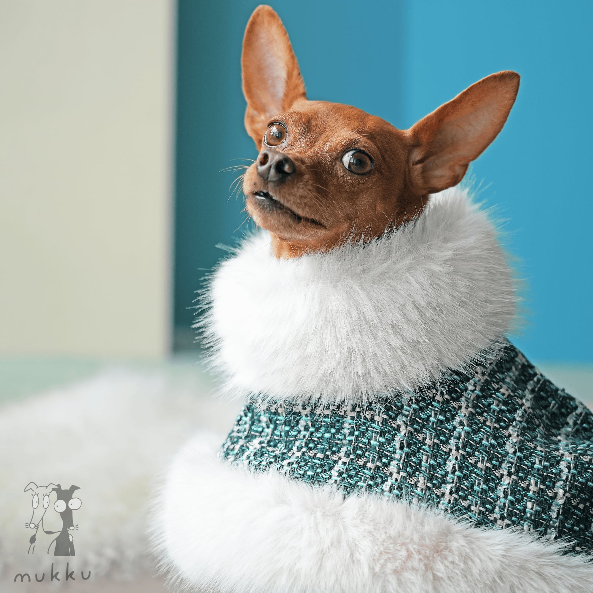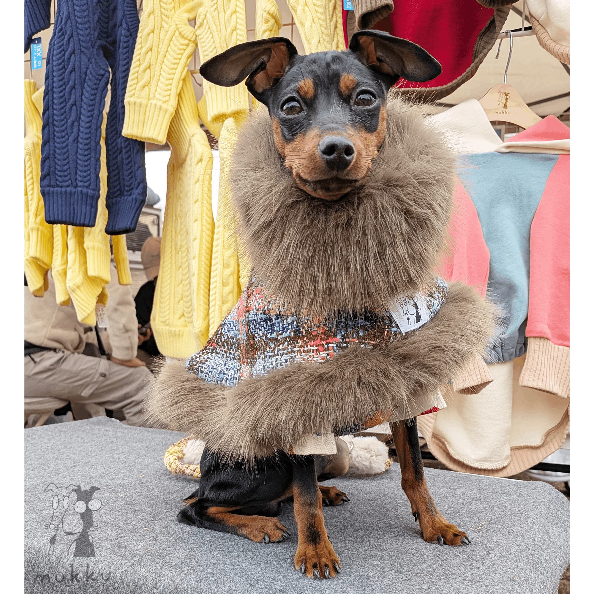 ミニピン用 ツイードファーコート